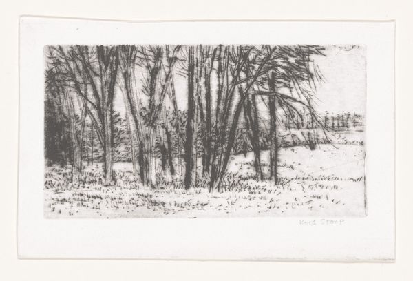 Kees Stoop made this drawing of bare trees, in graphite perhaps, at an unknown date. It's a study in seeing, for sure, in the way the marks build up to describe the trees without any grandstanding. There is a humility to this sketch; it's not trying to be a big statement. The graphite is layered to create a textured surface, a kind of visual buzz that almost vibrates, which is quite a feat for a drawing. See how the strokes are like quick, glancing touches, building density? There's a real attention to the material quality of the graphite, how it can be smudged and layered to create depth. Notice the rhythm of the lines, their nervous energy, especially in the foreground; it reminds me of Twombly's scribbles. It makes me think about what it means to look closely and to find beauty in the ordinary, in the simple act of mark-making, a dialogue across time.