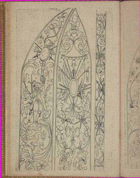 Curator: Here we have a drawing titled "Pa. German Love Chest," created between 1935 and 1942 using colored pencils on paper. The piece depicts the facade of, well, a Pennsylvania German love chest. Editor: Immediately, I notice how flat it feels. The muted palette of pale yellows, pinks, and greens evokes a kind of dreamlike nostalgia, almost like a memory fading at the edges. Curator: The chest itself is a fascinating example of folk art tradition brought to America by German immigrants, becoming particularly popular in the 18th and 19th centuries. These chests, often dowry chests, were intricately decorated and presented to young women before marriage. The tradition really speaks to ideas of domesticity and womanhood during the time. Editor: Exactly, and in looking at this drawing through that lens, the hearts, tulips and stylized rosettes aren’t just decorative elements; they're charged symbols of fertility, love, and new beginnings. The geometric design with the initials inscribed further underscores that these are deeply personal and meaningful objects. The artist chose a folksy subject during the 30’s. Why? Curator: Possibly for cultural preservation and promotion. During that time, we see a rise in Regionalism. Artists are looking inward and focusing on local traditions as an antidote to growing industrialization and perhaps the trauma of the Depression. Showcasing “authentic” American experiences like those of the Pennsylvania Germans provided a kind of cultural security blanket during rapid social change. There may also be, here, an interest in Americana; with nation-building impulses as an undercurrent. Editor: So it’s interesting. What was considered simply functional or folk, then, now functions in this artwork as something that is highly self-conscious, almost political, even in its apparent innocence. This drawing reminds us of the stories embedded in everyday objects and of art's potential to celebrate—or critique—those histories. I do think these chests, while they visually spoke to tradition, were in real-time contributing to patriarchal lineage and legacies. Curator: I think your interpretation beautifully showcases how we can view these folk objects not just as quaint relics but as important pieces of cultural history that tell complex stories. They reflect a society grappling with its identity during a turbulent era. Editor: Absolutely. Examining those tensions and using artworks to spark broader dialogues on these narratives—that’s really where the power lies for me.