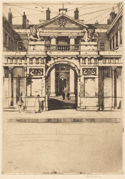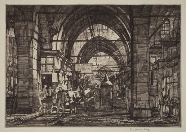 This is Henry Rushbury's "Governor's Court, Bank of England," an etching. Rushbury, who lived through both World Wars, produced artwork that often focused on architecture. Here we see the stoic architecture of the Bank of England. Consider the weight of the institution and the history it represents. Rushbury made this piece during a time when the Bank of England was central to global finance, playing a key role in managing Britain's economic affairs and international trade. What stories do these walls conceal? Rushbury skillfully uses light and shadow to convey the Bank’s imposing presence and the air of secrecy that surrounds it. This etching is more than just a representation of a building. It embodies the narratives of power, capitalism, and colonialism that are deeply embedded within the Bank’s foundations. It invites us to reflect on who is included and excluded in the spaces of economic power.