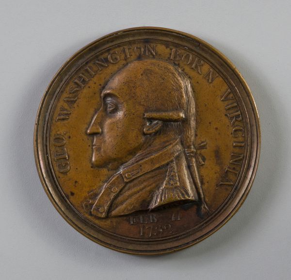 Jean-Baptiste Nini created this terracotta medallion of Jacques-Donatien Leray de Chaumont in the 18th century. The circular form is immediately striking, with its concentric rings framing the relief portrait. This structure invites the eye to move inward, focusing on the subject’s profile. Nini masterfully uses the medallion format to explore ideas of representation and identity. The inscription encircling the portrait, combined with the detailed rendering of Chaumont's features, creates a sense of historical presence. There’s a semiotic interplay at work here; the circular shape might symbolize completeness, while the profile view, common in classical portraiture, evokes notions of power and status. The artist uses line and form to convey not just a likeness, but also a sense of Chaumont’s place within the social and intellectual circles of his time. The artwork's power resides in its formal arrangement, inviting us to consider how the visual language of portraiture encodes cultural values and communicates meaning. Through the interplay of shape, line, and text, the medallion prompts us to reflect on the enduring relationship between art, identity, and representation.