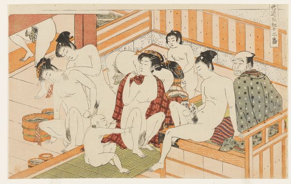 Okumura Masanobu made this woodblock print titled "Bedroom Scene" sometime between 1686 and 1764. During the Edo period, when Masanobu was working, *shunga* prints like this one served as both art and commodity. The print depicts a man and two women engaged in an intimate act, a subject made all the more intriguing by the context of its creation. During this period, societal norms and expectations regarding gender and sexuality were quite rigid, yet *shunga* prints offered a space where these norms could be explored, and perhaps even subverted. These prints were not merely erotic images; they were also cultural artifacts that reflected the complex interplay between desire, pleasure, and societal constraints. Masanobu’s print invites us to consider the ways in which sexuality has been both celebrated and regulated throughout history. It also asks us to reflect on the emotional and personal dimensions of human connection.