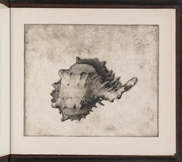 Charles Arthur Wells, Jr. created this print of a Murex brassica shell using an etching technique. Focusing on an everyday object such as a shell, this print speaks to a broader history of still life and natural history illustration, genres with deep roots in scientific documentation and artistic exploration. Etchings, due to their reproducibility, played a crucial role in the dissemination of scientific knowledge and visual culture, particularly in the 18th and 19th centuries. Wells's choice to depict this particular shell raises questions about the cultural and social meanings associated with natural objects. Shells, for instance, have long been collected as curiosities, displayed as status symbols, and studied as scientific specimens. Further research into Wells's other work, alongside an exploration into the historical contexts of shell collecting and scientific illustration, may provide a deeper understanding of this print. This illuminates the artist's intentions and the social and cultural values reflected in the seemingly simple image.