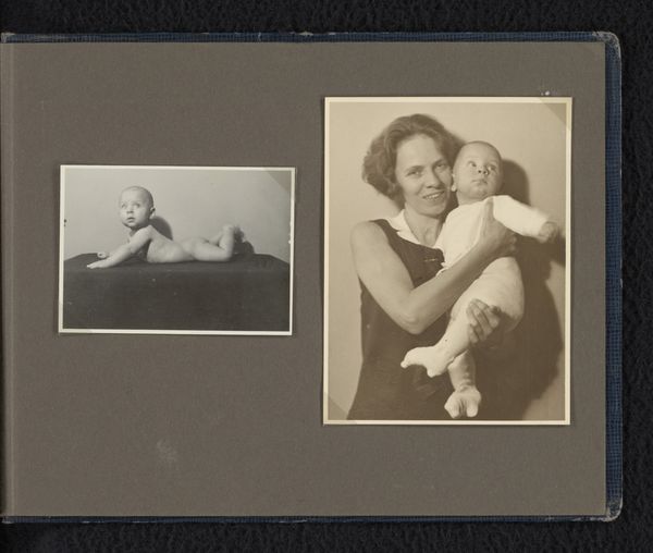 Curator: So here we have photographs of children, made by Isabel Wachenheimer sometime between 1947 and 1955, probably in either Israel or the United States, preserved as gelatin-silver prints within what looks like a family album. There's a quietness to the compositions and a rawness about the texture of the print; it really brings forth a nostalgic sentiment. How would you begin to interpret these works? Editor: Well, I am intrigued by the use of the family album format itself. It highlights the means of photographic production as an item of material culture: photographs in private, familial settings that seem very personal. I suppose the value really lies in this particular configuration as an item of material exchange. Curator: Exactly. These aren't formally staged studio portraits intended for public display, but rather intimate snapshots preserved within a domestic context. How do the materials themselves – the photographic paper, the album – contribute to the meaning of the artwork, given the time period it was produced? Editor: The accessibility of the photographic materials seems relevant here. After WWII, the use of more common cameras and readily available materials emphasizes the process of photography itself becoming embedded in familial activities, rather than solely a tool of professional production. Curator: Precisely. The gelatin-silver print, while established, was still a readily accessible medium for capturing these moments. Considering this, how does it speak to issues of labor, accessibility, and democratization within the photographic arts, if at all? Editor: I believe it showcases a shift away from elitist notions surrounding the means of photographic reproduction by showing us its entry into personal collections of people not usually considered 'artists.' Curator: This democratization of photography, and its inclusion in everyday life through something as commonplace as a family album, really challenges our conventional definition between art and craft. Editor: It's quite interesting seeing art historical conventions through a lens focused on materiality! Curator: Yes! And this method allows us to reassess the consumption and distribution of art within wider societal and personal settings. Editor: Thank you for elaborating! It is insightful to think of the processes through a materialist approach.