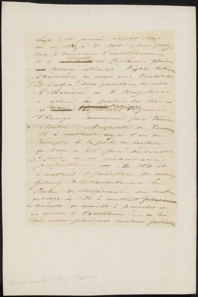 Editor: Here we have "Brief aan anoniem," or "Letter to Anonymous," attributed to Izaak Schouman, likely from 1842. It's an ink drawing on paper, held at the Rijksmuseum. The script is so elegant, but it’s hard to decipher, giving it an air of mystery. What symbols or cultural markers do you see embedded within this seemingly simple letter? Curator: I am struck by the weight of the written word itself. Letters, before mass communication, were vital cultural arteries. Notice how the loops and flourishes in the penmanship elevate the letter beyond a mere message into a form of art. The act of writing then carried emotional, psychological, and cultural resonance, a ritual almost. Editor: That's fascinating. So, the very act of writing itself becomes symbolic. But who was the intended recipient? What might the anonymity suggest about the letter's contents? Curator: The anonymity invites speculation. Was it discretion, fear, or perhaps a deliberate attempt to universalize the sentiment? Think of romanticism. What feelings come up for you as you view this work? Editor: Definitely a sense of longing. The delicate lines and the obscured message seem to hint at unrequited feelings or a secret. Curator: The use of ink, a medium known for its permanence, further emphasizes the gravity of the unspoken. It's as though the artist is etching the emotions into the very fabric of time. Does it change your understanding that the tag describes this piece as ‘ink drawing experimentation?’ Editor: Interesting – an experiment infers risk. Perhaps this ‘anonymous letter’ becomes less about communication and more about artistic expression. Curator: Precisely! The symbolic weight shifts from messenger to medium, inviting us to consider art's potential to capture profound personal meaning. I’ll keep this artistic intention in mind. Thank you. Editor: It reframes the piece entirely, and it adds layers of complexity. I hadn't considered that perspective initially.