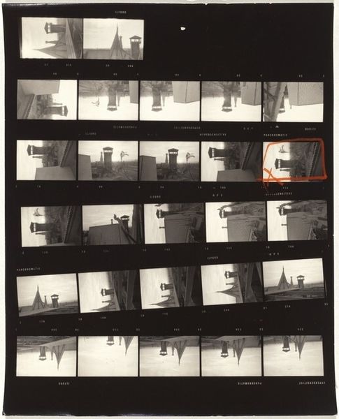 Robert Frank created this photographic contact sheet, "Guggenheim 562--Palm Springs, California," the date of which is currently unknown. The work offers a glimpse into Frank's photographic process. It reveals the sequencing, selection, and editing involved in his street photography. Frank, a Swiss-American photographer, is renowned for his raw depictions of American life, particularly in his seminal book, "The Americans." As an outsider, Frank captured the nuances of American society, often focusing on themes of alienation, racism, and social disparity during the postwar period. Here, the images show a bright, sunny day at Palm Springs. We see a street with palm trees and parked cars. Consider how Frank's gaze, shaped by his own experiences as an immigrant, offers a critical perspective on the American Dream. The contact sheet itself becomes a poignant commentary on the construction of narratives and the complexities of seeing and being seen in America. The red markings indicate Frank’s editing choices, inviting us to reflect on what is included, what is excluded, and the stories that emerge from these selections.