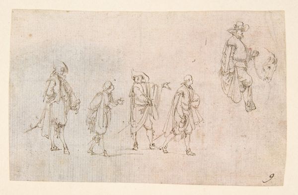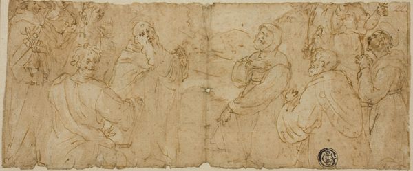 This pen and brown ink drawing, "Procession of Musicians," was created by Francesco Allegrini. The figures here carry not only musical instruments but also echoes of ancient revelry, seen in the raised thyrsus, a symbol of Dionysian frenzy. The procession evokes images of Bacchic rites from antiquity, where music and dance blur the lines between the human and the divine. The emotional energy of the group, captured in their gestures, connects us to primal, ecstatic experiences—much like the Maenads, the female followers of Dionysus, whose uninhibited dances were said to lead to profound spiritual insight. Consider, too, how these motifs of ecstatic processions and musical fervor reappear throughout history. We see this in medieval carnivals, Renaissance festivals, and even modern-day parades, where the power of collective joy and movement transcends time. Allegrini's drawing captures the enduring human need to connect through rhythm, music, and communal experience, a testament to art's capacity to evoke powerful, subconscious memories. This cultural memory reminds us that the past is always present, influencing our emotions.