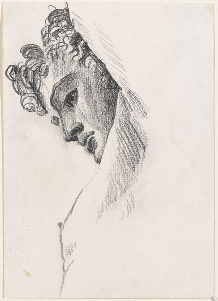 Editor: This drawing, attributed to Franz Kobell, is titled "Magdalene." It's a study of a woman's face, rendered in what appears to be graphite. The softness of the shading gives her a serene, almost ethereal quality. What do you see in this piece? Curator: The artist's employment of sfumato, a technique which subtly blurs the lines of the subject, evokes a sense of depth and volume. Note the delicate hatching that shapes the contours of her face. Observe how the artist uses light and shadow to convey the subject's emotional state. Editor: So, the technique is integral to understanding the emotion? Curator: Precisely. The arrangement of light and shadow, and the composition of the figure within the frame, allows the drawing to transcend its material form and function as a conduit for a deeper, more nuanced experience. Editor: That’s fascinating. I hadn’t considered the technique informing the feeling so directly. Thanks! Curator: Indeed. The careful arrangement of formal elements provides ample ground for contemplation.