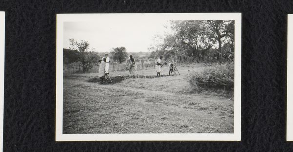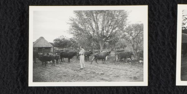 This photograph by Willem Jacob van den Berg captures his farm in Transvaal, South Africa. The high contrast black and white tones give the image a timeless feel, like a memory surfacing from the past. The photograph is a study in texture, from the rough-hewn wooden fence to the smooth hides of the cattle. The surface of the print has a slightly grainy quality, emphasizing the immediacy of the scene. Note how the eye is drawn to the center of the photograph, where a group of figures are attending to a fallen animal. This detail provides a focal point, a mini-drama unfolding amidst the everyday life of the farm. Van den Berg's work reminds me of photographs by August Sander, capturing the everyday realities of life with an unflinching eye. Both artists share an interest in documenting the world around them, presenting it with a mix of detachment and deep empathy. Ultimately, this image invites us to reflect on the nature of labor, the relationship between humans and animals, and the beauty found in the most unexpected places.