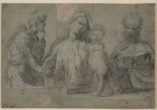 Editor: This is "Figures around a Baby and a Girl with Birdcage", a pencil drawing from around 1858 by Bastiaan de Poorter, currently held at the Rijksmuseum. There's a certain tenderness to the scene on the left, but then the girl with the birdcage introduces a conflicting idea. What strikes you when you look at this piece? Curator: What I see is a diptych almost, contrasting different facets of feminine experience within 19th-century societal constraints. We have idealized motherhood versus perhaps, a girl embodying innocence and nascent womanhood, holding a birdcage – a symbol of both captivity and potential freedom. It's interesting to think about how gendered expectations confined women, not unlike that caged bird. Editor: That's interesting – the idea of societal constraints. The figures around the baby do seem quite nurturing, but is there a darker side to that, a pressure perhaps? Curator: Exactly! Think about the period. Motherhood was practically the only socially acceptable role for women. This "nurturing" could also represent immense pressure and a lack of agency. Is it genuine affection, or is it a performance expected of them? And the girl, is she a keeper, or does she have more affinity with what's held inside? Editor: So the birdcage could represent her own limited choices? Curator: Precisely. Or perhaps her longing for something more, the desire for autonomy, even escape. Consider also how the male gaze might interpret this imagery versus the experience of the female artist herself, assuming this were created by a female artist? Editor: I never considered the gaze of the artist versus the interpretation! That adds another layer. I now read it in an entirely different way. Curator: These layered meanings make the artwork incredibly compelling. It is vital to remember art isn't created in a vacuum and often engages directly, perhaps subconsciously, with the prevalent power structures.