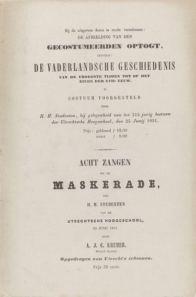This is C. van der Post II's 1836 print, created for the second centenary of the Utrechtse Hogeschool. It documents a historical parade put on by the students. Consider the complexities inherent in historical reenactments. Who gets to represent history, and what stories are prioritized? This performance highlights a very specific, and undoubtedly, white, male, upper-class version of Dutch history. Consider too, what it means to perform history as a mode of both celebration and perhaps, unacknowledged critique. This print freezes a moment in time, inviting us to reflect on how institutions shape our understanding of the past, and the power dynamics at play in constructing collective memory. While seemingly celebratory, such displays often carry undertones of exclusion, prompting us to question whose stories are being told, and whose are being erased.