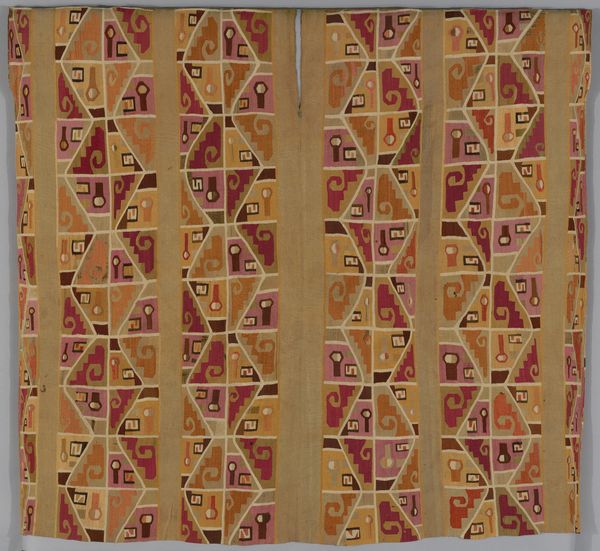 Editor: So this is "Quilt, Contained Crazy pattern" made around 1872, a textile piece at The Met attributed to Nancy Doughty. It’s very intricate, all these brown, beige, and pink geometric shapes patched together… It almost feels chaotic but constrained at the same time. What do you see in this piece beyond the surface? Curator: Beyond the beautiful geometric composition, I see a powerful statement about women's work, domesticity, and even resistance. During the late 19th century, women were often confined to the domestic sphere, and quilting became one of the few avenues for artistic expression. But “crazy quilts” like this one, with their irregular patterns, can be interpreted as a subtle rebellion against the restrictive societal norms of the time. Editor: That's interesting. So the 'craziness' is the point? Is it about breaking from tradition, using a very traditional art form? Curator: Exactly. The “crazy” aspect disrupted established aesthetics, offering an opportunity to express individuality within the bounds of traditional craft. What materials do you notice and what might they represent? Consider, where did these fabrics come from? Editor: It's mostly scraps, it seems, different textures, and patterns... So maybe these were clothes, furnishings... Pieces of everyday life repurposed? Curator: Precisely! These scraps hold stories—fragments of lives, events, and memories woven together. A quilt is transformed into an intersectional narrative. And the act of creation, quilting within community circles, can be seen as a form of collective resistance and identity formation. How do you feel about this activism? Editor: It's so interesting to think of something so beautiful and domestic as having such strong connections to gender and cultural issues. I see the quilt completely differently now! Curator: Hopefully, it enriches your appreciation and challenges us to reconsider what constitutes 'art' and who gets to make it.