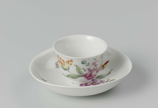 This is a porcelain cup and saucer made by Porseleinfabriek Den Haag, adorned with delicate painted scenes. Notice the idyllic, pastoral scene encircling the cup: cherubic figures amidst lush landscapes. These images, echoing the ancient Greek concept of Arcadia, evoke a sense of utopia, a longing for a simpler, more harmonious existence. Consider how such imagery resurfaces throughout art history—from Renaissance paintings to 18th-century Rococo designs. These cherubs can be traced back to Eros, the Greek god of love, or Cupid in Roman mythology. The cup and saucer are not merely decorative objects but vessels carrying potent cultural memories. This longing for an idealised past is a recurring motif in art, reflecting our collective, subconscious desire to return to a state of innocence and natural harmony.