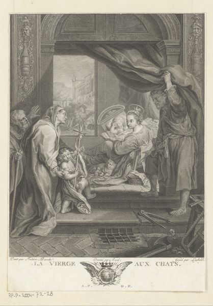 Curator: My word, that's a whirlwind of emotion. It’s like witnessing a play in freeze-frame. Everyone's caught in a dramatic moment. Editor: Indeed. What we're seeing here is "The Father’s Curse; The Ungrateful Son," a pen, ink, and paper drawing crafted in 1778 by Jean-Baptiste Greuze. Greuze was fascinated with the depiction of everyday moral dilemmas through these intricate, theatrical scenes. Curator: The staging feels very intentional, almost baroque, yet the rawness of the emotion is immediate. The harsh lighting certainly contributes to the turmoil, it is practically cutting everyone in half! I get the sense that some serious domestic drama is unfolding before our eyes. Editor: Absolutely. Considering its time, this drawing exemplifies shifts toward Romanticism within academic art traditions. The narrative touches upon the popular eighteenth-century theme of the prodigal son. We see the son about to depart, perhaps for military service, rejecting his father's protestations— hence the curse. Notice how Greuze uses the body language, each character trapped within their sorrow and frustration to amplify this conflict. This encapsulates larger social narratives concerning familial obligation versus individual ambition, all during the lead-up to the French Revolution. Curator: Ah, yes, I can really see how anxieties about individual freedom versus familial duty are at play here, but there's such immediacy too! I can feel the hot blood and anger of the figures, even in a static image. The frantic gesturing... the looming presence of poverty everywhere...It makes one wonder what each player thought about this disruption. Editor: A lot to think about indeed, considering it is a piece that compels us to consider themes of patriarchal authority, filial rebellion, and the precariousness of domestic stability amid larger societal shifts. Curator: Ultimately it begs reflection on the long history of conflicts across generational divides that perhaps has more layers of historical social power structures than it might first reveal!