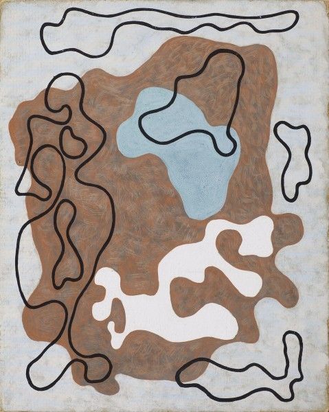 Curator: Welcome. We’re standing before Brice Marden’s "Nevis Rock," created in 2008. It's an oil painting where line and ground engage in a visually arresting dance. Editor: It has a ghostly presence, like an apparition rising from mist. The texture looks built up, almost like dried pigment layered over time. Curator: Precisely. The lines, which seem at first glance spontaneous, reveal on closer inspection an intricate construction. Observe the subtle variations in the thickness and weight of each line, as they curve and intersect, creating depth within a shallow field. We can trace the lineage to Abstract Expressionism here, in the gestural energy. Editor: But there's an intentionality, a controlled process belied by that initial impression. I’m curious about the ground—how many layers went into that texture, and what kind of tools Marden employed to achieve that sense of history on the canvas. It feels almost excavated, as if he’s unearthed something ancient. Curator: It’s interesting that you frame it in that way. I find that Marden masterfully toys with figure-ground relationships, pushing and pulling them within the pictorial plane, causing an almost palpable tension, which, while related to abstract expressionism, stands apart as a deeply meditated act. Consider the repetition and variation within this structure. How each line simultaneously defines and disrupts its neighbours. Editor: Yes, I see the tensions you're highlighting now—the deliberate contrast, like threads woven within an aged, almost crumbling tapestry. Thinking about the artist's hand here, what part did the conscious intention and laborious physicality of the materials contribute to this "apparition?" Curator: The dialectic tension between order and chaos offers endless possibilities for the observer. Editor: It reminds us how the artist shapes experience using tools and intent, blurring lines between chaos and the mark maker’s careful order, inviting consideration of materiality’s place within the idea. Curator: Absolutely. An exquisite visual game indeed. Editor: Thank you for untangling that complexity!