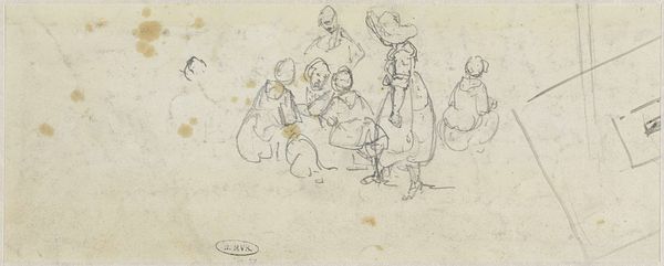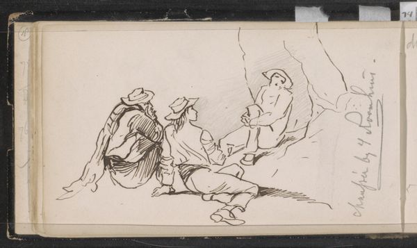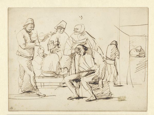Editor: Here we have Hokusai’s "Three Men with a Tray," a drawing from the 19th century currently residing at the Minneapolis Institute of Art. The linework gives it an informal, almost playful feel. What do you notice in terms of how Hokusai made this piece? Curator: What interests me most is the visible process. This is a drawing, right? So we’re immediately dealing with the raw materials: paper and ink. You see the artist's hand, the directness of the line. Consider the social context too: Ukiyo-e, though celebrated today, was popular art, made for a wide audience, relying on the labour of craftsmen, woodblock carvers, and printers. This drawing gives us insight into the stages *before* mass production. Editor: So, seeing the initial marks shows us something different than the finished print? Curator: Exactly. It exposes the means of production. Hokusai's hand is guiding us through the initial planning stages, skipping traditional artistic mediums altogether. He challenges notions of the artist as solely an idea-generator, bringing attention to his craftsmanship through line. Consider also, how affordable paper allowed for greater experimentation. Editor: That’s interesting, it makes you think about how the art market values different stages of creation. Curator: Precisely. What might once have been seen as preliminary is now itself a valuable object, due to the materiality of its creation. It raises the question of what *makes* a piece worthy of artistic appreciation: the finished product, or the evidence of the labor that went into it? Editor: I’ve never thought about ukiyo-e that way before; seeing this drawing has completely shifted my perspective. Curator: Yes, by looking at material, labour, and consumption, we’re getting at a far more nuanced appreciation.