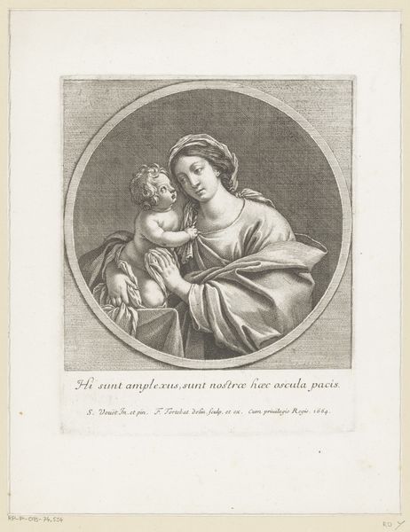 Jean François Badoureau created this print of the Virgin and Child in France, sometime around the early 19th century. It's an interpretation of a painting by Raphael, reflecting a broader cultural interest in the Renaissance masters during this period. Prints like this played a crucial role in disseminating artistic ideas and religious imagery across Europe. They made art accessible to a wider audience beyond the elite circles who could afford original paintings or travel to see them. This particular image taps into the powerful social and religious symbolism of the Virgin Mary as the mother of Jesus, a central figure in Christian belief. To truly understand the print’s place in its time, one would need to delve into the social and religious context of 19th-century France and the art market's institutional structures. We could explore the rise of printmaking as a medium, and the ways in which religious imagery was used to reinforce social norms. Art historical research, using primary sources like exhibition catalogs and critical reviews, could reveal much about its original reception and meaning.