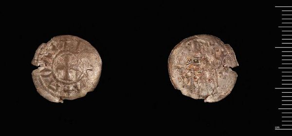 Curator: We're looking at an Aspron Trachy Nomisma of Alexios III, likely from Constantinople. Notice the careful engravings on such a small surface. Editor: It's remarkable how much detail they managed to pack onto this coin. The patination gives it a sense of ancient gravitas, almost like it's whispering secrets. Curator: Indeed. The coin represents Alexios III, an emperor of the Byzantine Empire. Coins like these were not mere currency but powerful tools of propaganda. Editor: So, each coin was a miniature declaration of imperial power, circulated throughout the realm. I wonder how many hands it passed through and the stories it could tell? Curator: It's humbling to consider the weight of history it embodies. The surface’s texture, along with the form, reveals the artist's intention. It's a formal dance between representation and utility. Editor: A tangible relic of a vanished empire, transformed into a potent symbol of authority—quite fascinating to contemplate. Curator: Precisely. There’s still value in understanding the message and craftsmanship in this work.