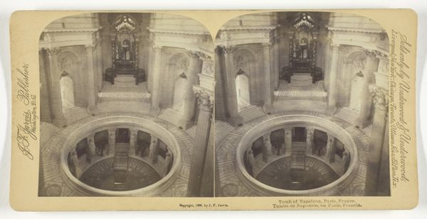 This stereoscopic card, by Henry Hamilton Bennett, captures a night scene of snow figures and the east front of an ice palace. The sepia tones and the stereoscopic format lend the scene a dreamlike quality. The composition is structured by the contrast between the solidity of the snow sculptures in the foreground and the ephemeral glow of the ice palace behind. The sculptures, arranged in rows, lead the eye towards the palace, creating depth and perspective. The use of light is particularly striking. The sculptures and palace are illuminated, emphasizing their forms and textures. The stereoscopic technique enhances the sense of depth, inviting the viewer to step into this winter wonderland. The photograph functions not merely as a record of an event but as a semiotic landscape, challenging our perceptions of space and reality.