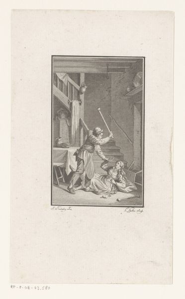 Editor: Here we have "Saul and the Ghost of Samuel at Endor," an engraving from somewhere between 1662 and 1736, currently held at the Rijksmuseum. There's something intensely theatrical about the scene – everyone is reacting so dramatically. The lines are so fine, yet convey so much… emotion? What do you make of it? Curator: Theatrical indeed! Almost operatic, wouldn’t you say? It sings of a desperate moment, ripped from the Old Testament. Saul, the King of Israel, is consulting a witch to summon the ghost of the prophet Samuel. Think about the weight of that decision, the transgression against divine law, rendered with these frenetic lines! Editor: The figures feel… spectral. Samuel looks rather annoyed to be disturbed! Curator: And rightfully so! Imagine being yanked from the afterlife to deal with Saul’s… frankly, terrible leadership skills. See how the artist uses light and shadow to give the spirit a less substantial form. Editor: So, beyond the dramatic scene, is there anything about the printmaking technique itself that stands out? Curator: Oh, absolutely. Engraving allowed for a remarkable level of detail. The cross-hatching builds up the shadows, creating this really rich and textural surface, even though it’s entirely linear. It's as if the artist is conjuring the scene through sheer willpower and exquisite line work. Did you catch that there is an odd snake crawling near Saul? Editor: Whoa, I almost missed it. Why a snake? Curator: The serpent, you know, a traditional symbol, could echo deception and temptation, a subtle suggestion about the dangerous path Saul's treading, but, heck, perhaps is just there for an ornamental touch, like an inside joke from the artist, haha! What a troubled dude Saul must have been! Editor: So much going on below the surface – literally! Curator: Indeed! Each viewing seems to peel back another layer of story and craft. Art always has surprises for those ready to look.
