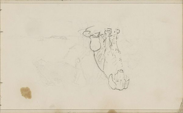 Editor: So, this is "Studieblad met in het midden een schaatser op de rug gezien, rechts twee jagers," a pencil drawing on paper by Andreas Schelfhout, dating from somewhere between 1797 and 1870. It feels like a quick snapshot of daily life. What do you see when you look at it? Curator: I see a study in social observation. Look at the placement of the figures. The lone skater, seen from the back, isolates him within a larger social context. Schelfhout captures not just individuals, but different roles and activities. We see figures involved in leisure, in labour perhaps - depending on whether you view hunting as sport or a necessity. It really asks us to consider class and societal structure at that time. What is leisure, and for whom is it accessible? Editor: That's interesting. I hadn't thought about it in terms of class. I was mostly focused on the 'snapshot' feel of it, the immediacy. Curator: And that's a valid entry point. But consider the context of genre painting at that time. The 'everyday' was rarely just that; it was coded with meanings about morality, social order, and, definitely, class. This looks spontaneous, but is carefully arranged. How does Schelfhout depict the hunters in relation to the skater, and what assumptions might be embedded there? Editor: Hmmm. The hunters do seem more…assertive? Maybe more clearly defined, and actively moving. Whereas the skater, he’s just…there, passive almost. Is the lack of detail on the skater a sign of disregard? Curator: Possibly. Consider, too, that he's facing away. He has no agency or identity within our gaze. Think about who historically controlled the "gaze" in art, whose stories were being told, and from what perspectives. Who had the privilege of representation and who was just background noise. Editor: Wow. Okay, now I see it. It's not just a casual scene, it's loaded with social commentary about power and visibility. Thank you! Curator: Indeed! Art gives us a portal to look into society in ways other mediums fail. And even simple studies, sketches, give insights that should never be overlooked.