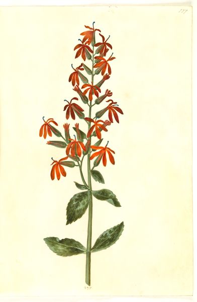 Jean Jules Linden made this print of Epidendrum Paniculatum, employing careful observation and traditional techniques. The medium is lithography, a method that allows for the accurate reproduction of botanical details. Linden’s print isn’t just a picture, but a detailed record, meticulously capturing the plant's color, form, and texture. Notice how the color, applied with precision, gives depth to the leaves and delicate petals, each rendered to convey its unique texture. The creation of such prints in the 19th century was a blend of artistry and industry. While the artist's skill was paramount, the printmaking process was collaborative. It represents not only the artist's vision but also the labor of skilled craftsmen who translated drawings into printed images. Ultimately, this print represents the era's ambition to catalogue and understand the natural world, blending the roles of artist, botanist, and craftsman. It demonstrates how the interplay of materials, processes, and social context can give botanical art its full meaning and significance.
