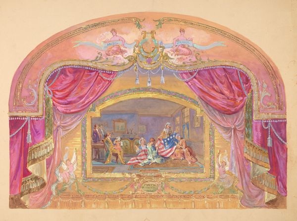Curator: This drawing, called "Conservatory Window with Flowers," comes to us from Perkins Harnly, created sometime between 1935 and 1942 using colored pencil and watercolor. Editor: My first thought is: what a charming, if somewhat artificial, idyll! It evokes a sense of being "proper" and quaint with its slightly theatrical display of flora, framed by rather stiff decor. Curator: The arrangement does appear staged. This was a period when artists were influenced by regionalism and social realism, often turning their eye towards depictions of American domestic life, albeit through their individual filters. Perhaps Harnly sought to portray the aspiration toward middle-class respectability in an idealized manner. Editor: Look at the symbolism. The flowers—life, beauty, fleeting moments of joy. Yet they're all contained, potted, managed within the confines of domestic space. Consider those portraits hanging on the walls, archetypes of establishment. It almost hints at the societal pressures placed upon the occupants. Curator: Fascinating. I’d add that the prevalence of the conservatory itself suggests something about the public image the occupants would want to project. It elevates the home, providing almost a stage for personal expression, indicative of a specific social ambition that prevailed during the Depression Era. Editor: The paired chairs sitting like props at stage left and right give me a feeling of longing or waiting, while that array of floral forms ascending toward the window symbolizes aspiration toward… what exactly? Transcendence? Freedom? Perhaps the light of social acceptance? Curator: Those are astute observations! Considering that Harnly himself led a relatively unconventional lifestyle during a less accepting era, perhaps this image represents an idealized yet somewhat constrained existence—a commentary on social expectations that were difficult to escape during this period. Editor: It's interesting how Harnly manages to embed all those cultural undercurrents beneath the delicate veneer of this floral scene, almost like pressing flowers in the pages of social history. Curator: Yes, indeed. And I’m reminded of how art can serve as both a mirror reflecting social norms and a window hinting at unspoken narratives.