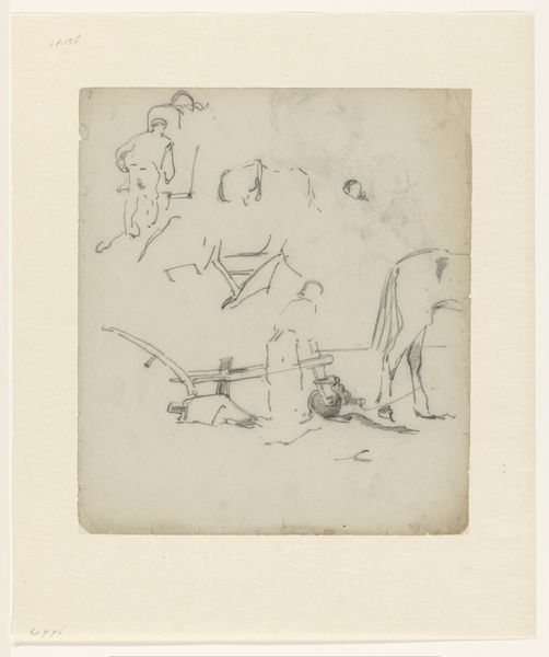 This undated study of figures and lion heads was made with pen on paper by Jacques Van Gingelen, a 19th-century Dutch artist. The image is divided into two distinct registers, with careful studies of lions occupying the upper half of the page. Below, people mill around a marketplace. They are women, men, and children, captured here as if in passing; each figure’s face remains unseen. Van Gingelen’s interest in depicting the working classes places this image within the context of 19th-century realism. Artists at this time, like Courbet and Millet, sought to represent everyday life, including the labor and struggles of ordinary people, as a form of social commentary. Van Gingelen’s choice to include the lion, a symbol of power and dominance, alongside these scenes of everyday life adds a layer of complexity to the work. Is the artist highlighting a contrast between the powerful and the powerless? Or is he perhaps suggesting the latent strength and resilience of the common person? In any case, Van Gingelen invites us to consider the dynamics of society and the varied roles individuals play within it.