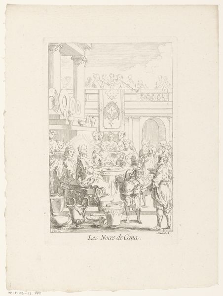 Curator: Before us is an engraving entitled "Christ Healing Peter's Mother-in-Law," created before 1732 by Gabriel Huquier. It's currently housed right here at the Rijksmuseum. What catches your eye initially? Editor: The radiant light emanating from Christ! It immediately draws your gaze and emphasizes his divine nature, a symbol often employed to highlight spiritual authority. There's an undeniably hierarchical element in its use. Curator: Indeed. The artist skillfully employs the engraving technique here. Notice the density and fineness of the lines, particularly in the background drapery, to create a sense of depth and texture. We should acknowledge the sheer labor involved, manually carving these lines to produce multiple identical prints intended for wide distribution, making religious imagery accessible to the public. Editor: That gesture of kneeling also speaks volumes. Beyond a demonstration of faith, consider the power dynamics. Someone is prostrate before a divine healer, suggesting humility but also highlighting dependency and hope channeled toward that specific figure. It solidifies the role of Christ within this visual narrative. Curator: The image functions, of course, within a very specific social and religious framework, in which art was often used as a tool for both instruction and reinforcement. The use of printed imagery, and specifically engravings, as they are relatively cheaper to produce, allowed such narratives and iconography to be disseminated more easily, creating opportunities for belief systems to perpetuate among the masses. Editor: Precisely, we witness faith, health, and divinity all rendered in such stark linear style! Consider the contrast. Despite the engraving's formal nature, it transmits intense symbolic significance and the ongoing, emotive appeal of spiritual iconography across centuries. Curator: Well, after that enlightening insight, I see the piece slightly differently now. The technical precision combined with the social context truly makes one consider the intention of the artist beyond just a simple visual representation of biblical narrative. Editor: Yes, pondering the relationship between image and icon – so valuable! It definitely enriches the viewer experience.