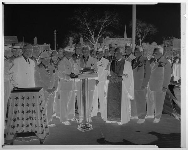 This photograph of female graduates planting a tree is held at the Harvard Art Museums. It is interesting how this photo negative captures a sense of growth and renewal. I'm drawn to the stark contrast between the graduates' gowns and the surrounding landscape. The way the light falls on their faces suggests a sense of hope and determination, while the delicate branches of the tree seem to reach upwards, symbolizing potential and possibility. I can almost feel the texture of the earth beneath their feet, grounding them in the present moment as they look towards the future. The inverted tones add a surreal quality to the image, reminding us that art can transform our perceptions and invite us to see the world in new ways. This piece reminds me of Bernd and Hilla Becher's photographs of industrial structures, in that it asks us to consider the relationship between humanity and the built environment. Both capture the beauty and complexity of the world around us, inviting us to contemplate our place within it.