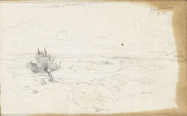 Johannes Tavenraat made this pencil drawing of a landscape near Nijmegen in the Netherlands sometime in the 19th century. At this time, landscape art was increasingly popular, reflecting a growing sense of national identity and pride in the Dutch countryside. But it wasn't just about pretty views. The detailed notations Tavenraat makes on the sketch reveal an artist deeply engaged with the specifics of the land. This attention to detail reflects the increasing importance of scientific observation and documentation during this period. The cultural elites believed that an artist's careful study of the natural world could reveal deeper truths about the nation and its place in the world. To better understand Tavenraat's work, we might consult historical maps, agricultural surveys, and writings on Dutch national identity. By understanding its original context, we can more fully appreciate its meaning and significance.