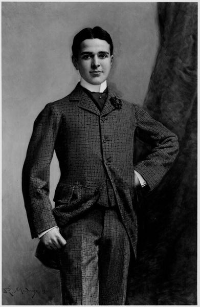 Curator: Standing before us is William Morton Jackson Rice's portrait of William Eustis Russell. Editor: It's a rather somber piece, isn't it? The stark contrast makes him seem almost spectral. Curator: The lighting certainly emphasizes the materiality of his suit, the heavy wool and tailoring speak to a specific class and time. Consider how this image would have circulated, shaping public perception. Editor: Indeed. Russell was a prominent figure, and Rice's choices reflect that status. The canvas size, those dark tones—they all reinforce an image of authority and respectability within established Boston society. Curator: And the very act of commissioning a portrait, the labor involved, reinforces a specific set of values in its making and reception. Editor: A fascinating glimpse into the construction of political image and power, don’t you think? Curator: Absolutely, it makes me reconsider my first impression of the portrait.
