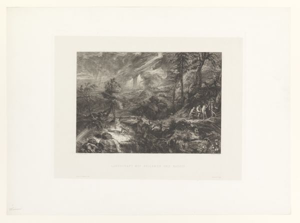 William Unger created this landscape with a waterfall as an etching. The image creates meaning through visual codes, cultural references, and historical associations with the landscape. Looking at the social conditions that shape artistic production, one can see the rise of landscape painting as intertwined with broader cultural shifts. In Unger's time, there was a growing appreciation for the natural world, fueled by Romantic ideals and the rise of leisure travel. Landscape art often carries ideological weight. Unger's waterfall might be read as a celebration of nature's power, or perhaps as a commentary on industrialization. Was he critiquing the art institutions? The rise of public museums provided new spaces for exhibiting and viewing art, shaping tastes and promoting certain artistic styles. The meaning of Unger's etching is contingent on its social and institutional context. It’s essential to consider the cultural values and historical forces that shaped both its creation and reception.