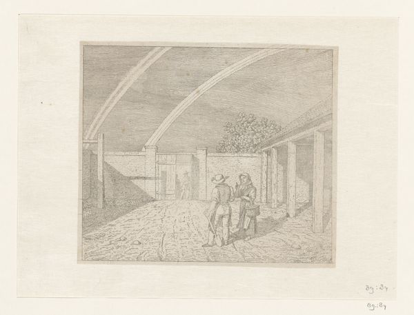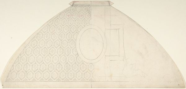 Editor: This is Koloman Moser's "Stage design for 'The minutes of love' by Edward Bauersfeld," created in 1908. It’s a drawing using colored pencil and pencil. There’s something about the starkness of the architecture combined with the softness of the colored pencil that really intrigues me. What do you see in this piece? Curator: It's crucial to understand the materials and their deployment within the context of Moser's era. He’s challenging the very idea of "high art" by employing drawing - traditionally seen as preparatory – for a stage design. Colored pencils were becoming more widely available, which democratized artistic expression. The availability of materials shapes artistic output. Editor: So the *choice* of colored pencil is as important as the design itself? Curator: Precisely! Consider the social context: theater design was collaborative, involving carpenters, painters, and stagehands. Moser’s drawing becomes a plan, a tool of communication and organization of labor. This is not some romantic, solitary artistic act, but a blueprint for collective production. And we must consider who has access to which materials, how these impact distribution networks, which dictates artistic availability. Editor: I never considered the collaborative aspect so explicitly connected to the materials. How the materials available dictate the outcome! Curator: Think about the diamonds on the back wall and bench, as another interesting case: mass production and commercial consumption. What the drawing lacks, the physical production can make up for. Editor: Right. The physical creation of this production becomes the actualized product, rather than just the colored pencil design! This makes so much more sense, especially considering the time it was created in. I think this context gave me more clarity and understanding of the time. Curator: Indeed, it’s a move beyond surface aesthetics. Focusing on production exposes the interplay of material, labor, and design in shaping our cultural landscape.