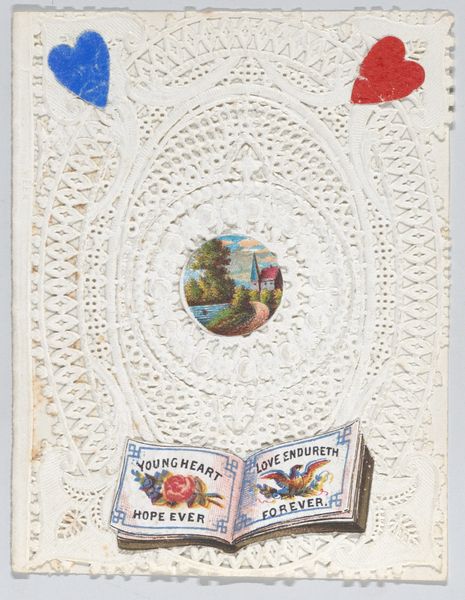 This Valentine, crafted by an anonymous hand, presents a delicate dance of symbols. Note the cherubs—echoes of Cupid, the Roman god of desire—hovering at the top and bottom. These figures, derived from classical antiquity, embody a yearning for connection. Consider how these motifs reappear across time and space. The cherub, once a symbol of divine love, transforms into a secular messenger of affection. Think of Botticelli's "Birth of Venus," where cherubs guide the goddess to shore, a motif adapted here to guide the winds of love. Observe how the central image of the house, the "domus," a symbol that is steeped in meaning, carries a sense of longing and belonging, a promise of hearth and home. This symbol represents the culmination of romantic love. Thus, a cycle of symbols begins again, resurfacing, and gaining new relevance.