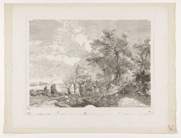 Joseph Meganck made this print of Lake Albano and Castel Gandolfo with etching. This image evokes the picturesque tradition, offering a composed view of nature alongside figures, all framed by trees. Meganck was Belgian, but the Italian scene here speaks to the rise of tourism and its impact on artistic production. The mid-19th century saw an increase in travel among the European middle class, often facilitated by new rail networks. Italy, with its classical heritage and scenic landscapes, became a prime destination. Artists responded by creating easily reproducible images for consumption by tourists, enabling them to return home with memories of the places they had visited. This print thus reflects a changing relationship between art and society. It is less about patronage and more about a market driven by a new culture of leisure. By researching travel guides and other popular imagery of the time, we can better understand Meganck's print and how it participated in shaping perceptions of Italy for a growing public.