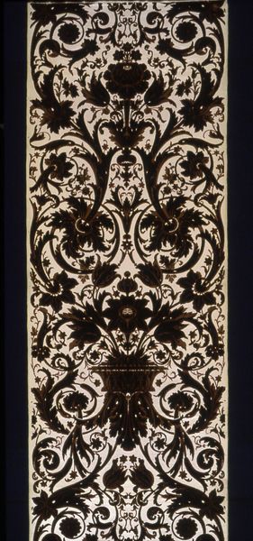 Curator: Take a moment to observe this piece titled "Panel," created by Prelle in 1876. It is a textile crafted from silk, and we're fortunate to have it here at the Minneapolis Institute of Art. What are your initial impressions? Editor: It’s ornate, isn't it? Overwhelming, even. The patterns within patterns suggest a kind of suffocating opulence. Curator: That's a great observation. Think about the time period. Prelle, as a textile manufacturer, would have been catering to a specific market – a wealthy, consumerist class eager to display its affluence. Silk production itself was a global enterprise involving complex labor systems, from silkworm cultivation to weaving. Editor: Precisely! And the "Pattern and Decoration" art movement connections, though arguably applied retrospectively, bring to light questions of gendered labor. Textiles, often seen as 'women's work,' were historically devalued compared to other art forms like painting or sculpture. We should be thinking about who was making this panel, under what conditions, and for whose benefit? Curator: Indeed, and the design itself evokes questions about the natural world. The abundance of organic patterns, the floral motifs... Are these simply decorative, or do they point to a romanticized, perhaps even exploitative, view of nature as a resource? Editor: Exactly. The romantic floral designs disguise what were essentially manufactured landscapes in the textile mills themselves. By examining the cultural values woven into this panel's fibers we might gain insight into the relationship between consumption, aesthetics, and labor. Curator: What's also fascinating is the repetitive nature of the pattern. It speaks to the industrial processes behind textile production at the time. We’re reminded that textiles were among the earliest consumer goods mass-produced, influencing social systems around the globe. Editor: I’d agree. A work such as this acts as a lens. It not only displays the art of weaving, but also provides insight into complex narratives of wealth, the gendered labor of its production, and society's shifting values. Curator: I'm glad you've touched on those topics, it allows us a further, fuller exploration of this singular and intriguing panel. Editor: Yes, bringing this work into conversation highlights crucial cultural dynamics that persist to this day.