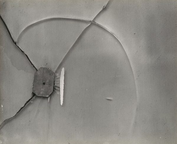 Editor: Today we're looking at Al Taylor’s "H. (All Thumbs)," a black and white print from 1997 that includes photography and drawn line work. It’s quite peculiar; the composition strikes me as playful, maybe even a bit absurd with its magnified view of a thumb overlaid with these free-form shapes. How do you interpret this work? Curator: Indeed, the photograph is engaging in its structural arrangement. Observe how Taylor presents a play between the photographic reality of the thumb, captured with precise gradations, and the added geometric abstractions. The imposed lines operate within a pictorial space but, equally, seem to want to depart from the surface and function more as objects. Do you notice how this tension creates a visual disjunction, an aesthetic oscillation for the eye? Editor: I do! It's like the photograph is trying to be a sculpture. Are those scribbles on the nail meant to throw us off? Curator: Perhaps. More compellingly, note the stark contrast in value, as the graphic black lines interact with the tonality of the photography to form a relational composition; observe too the interaction between the geometry of the imposed forms and the organic nature of the human figure depicted, seemingly attempting to merge two incompatible states into one cohesive unit. The success is measured, naturally, within a formal rubric of visual relationships. Editor: So, it’s not about the subject matter, but more about how the elements are arranged and relate to each other? Curator: Precisely. It is in the visual interplay, and the resulting formal tensions, where the meaning resides. Editor: That makes sense. I hadn’t considered focusing so intently on the purely visual aspects and how they communicate. Curator: Often, when an artist invites us to contemplate simple subjects through complex formal arrangements, it prompts us to reassess the very way we see. Editor: That’s a great point. I’ll definitely look at art with a new lens from now on!