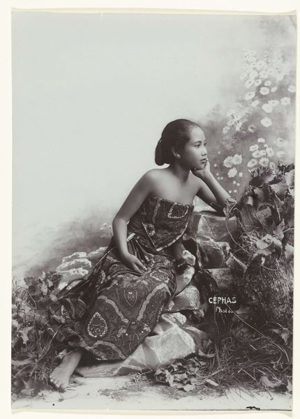 Editor: So, this is "Studio Portrait of a Javanese Woman" taken sometime between 1867 and 1910 by Kassian Céphas. It's a black and white photograph from the Rijksmuseum. The woman’s gaze is incredibly direct. What strikes you most about this piece? Curator: It's a photograph, yet the weight of symbolism feels incredibly potent. Notice how the studio setting contrasts with the traditional Javanese dress. The clothing speaks of heritage, of a specific cultural identity, yet the formal portraiture is very much a Western construct. Editor: That's interesting, the kind of push and pull between cultures. Curator: Precisely. It raises questions about how identity is presented, negotiated, and even preserved in a time of increasing colonial influence. Consider the ‘sarong kebaya’ she’s wearing; it represents Javanese womanhood, and what values might it have held at that time? Editor: Loyalty to the community, respect for elders, maybe? The photograph seems to almost enshrine those qualities. Curator: Indeed. And the artist, Kassian Céphas himself, was Javanese, appointed as the court photographer by the Sultan of Yogyakarta. That fact layers in further complexity. Editor: So he was navigating both worlds, too. He wasn't just an outsider looking in. Curator: Exactly. It's about more than just documenting someone's appearance, isn’t it? What lasting impression do you feel this photograph creates? Editor: I'm left thinking about the power of images to hold onto traditions while cultures shift around them. It makes you wonder about all the hidden layers within that steady gaze. Curator: Me too; the photo resonates beyond its immediate aesthetic. The weight of visual codes in play provides an invitation to connect with collective memory and cultural endurance.