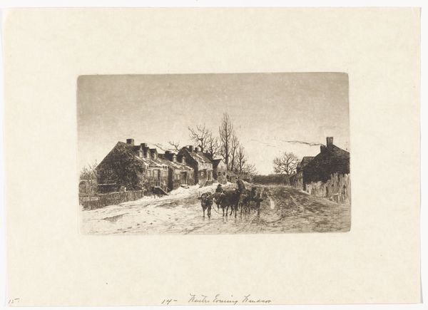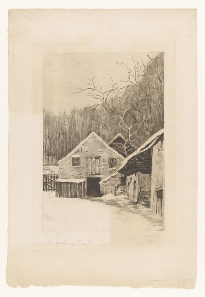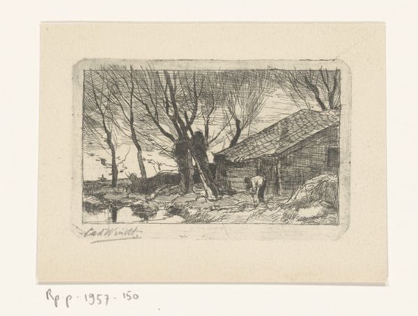 Editor: So, here we have "Gezicht op Oberammergau," an etching by Eugen Siegler, created sometime between 1904 and 1949. It's a lovely, detailed landscape. What captures your attention most when you look at it? Curator: Immediately, I’m drawn to the process of etching. Think about the labour involved, scoring that plate to produce such intricate detail, a bridge, a village... Consider the material itself - the metal plate, the acid, the paper onto which it's printed. It speaks to a specific moment in the industrialisation of art. How does the availability of mass-produced materials shape the artistic vision? Editor: That’s interesting. I hadn’t thought about the labour in that way, seeing it more as… skill. So, you're saying that Siegler’s access to these specific materials influenced his artistic choices? Curator: Exactly. Consider the social context too. Who was Siegler producing this for? Was it intended for mass consumption, for the burgeoning middle class wanting picturesque scenes of the countryside? How might the rising print industry change access to art? Is he elevating the German landscape into art? Editor: It makes me rethink the entire artwork, seeing it as part of a much larger economic and social landscape. Curator: Precisely! The very act of creating multiples democratizes art, offering affordable representations of places for more and more people. We can consider Siegler as contributing to, but also participating within, a shift of power when thinking about art in society. What do you make of it now? Editor: I hadn't considered its accessibility from a production perspective. Seeing this image is one thing; considering the plate, the etching process, and potential consumer is a completely different angle. It's very powerful. Curator: It truly is. The work reveals so much more once you start to think about the social and material forces that shaped its creation and distribution.