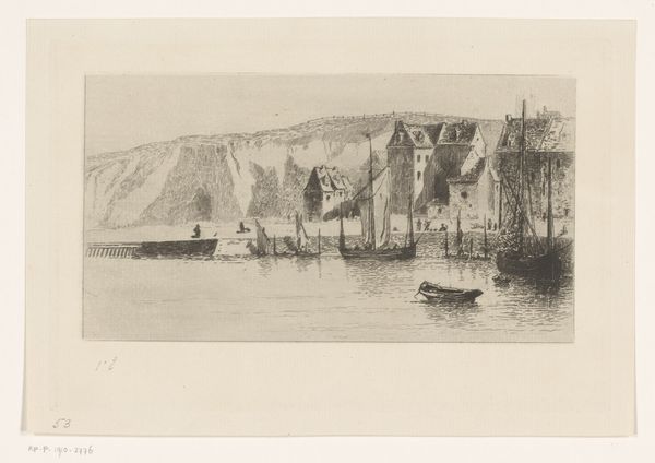 François Bonvin made this etching titled 'View of the Port of Rance' sometime in the mid-19th century. Here we see a common theme in Bonvin's oeuvre: the lives of ordinary people in ordinary places. France in the 1800s was a country undergoing massive social and economic change. The Industrial Revolution was in full swing, and traditional ways of life were rapidly disappearing. In this context, artists like Bonvin took it upon themselves to document the lives of the working class, seeing dignity in labor that was often overlooked by the official art establishment. They were part of a broader Realist movement in painting and literature that was trying to challenge academic conventions and bring art closer to the everyday experiences of ordinary people. To understand this work better, one might consult historical records, newspaper articles, and personal letters from the time. The meaning of art is never fixed.