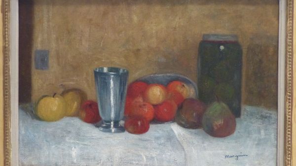 Walt Kuhn made this oil painting, Green Apples and Scoop, in 1933. The still life depicts a wooden bucket overflowing with green apples, a wooden scoop overturned on a blue cloth, and a scattering of apples. The muted palette and humble subject matter reflect the social and economic conditions of the Great Depression in the United States. The image seems to offer a statement on the value of simple sustenance during a time of widespread hardship. Kuhn was very aware of the social function of art, helping to organize the groundbreaking Armory Show of 1913 that introduced modern art to an American audience. To understand fully the painting's social context, we might research government programs that supported artists during the Depression, like the Public Works of Art Project. These initiatives helped to redefine the artist’s role in society. We can see how this work resonates within a wider history of art and social change.