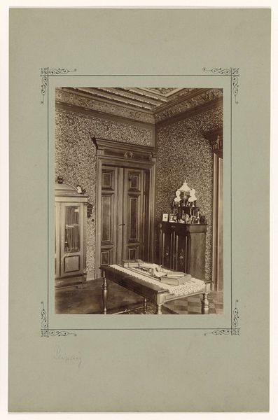 Editor: This photograph, "Untitled (stairway)" by Martin Schweig, captures a fascinating interior. I’m struck by the contrast between the dark, heavy wood and the bright light flooding in. What draws your eye when you look at it? Curator: Immediately, the formal composition presents itself: the interplay of light and shadow across the geometric forms. Note the strong horizontal lines of the ceiling beams juxtaposed against the verticality of the window mullions. Editor: So, it’s all about the relationship between the lines and shapes? Curator: Precisely. The photograph constructs a visual dialogue between opposing forces, creating a sense of tension and balance, almost a semiotic meditation on space itself. The materiality, that sepia tone, enhances the depth. Editor: I see how focusing on those elements changes my understanding of the image. Curator: Indeed, by examining these intrinsic qualities, we unlock a richer understanding of the artist’s intent.