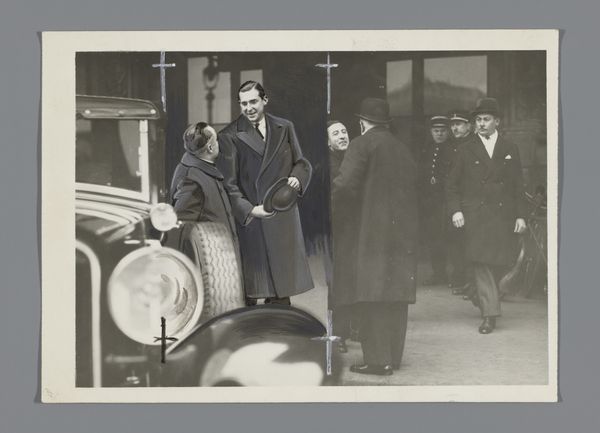 Curator: This arresting image, taken around 1930 by Inc. International News Photos, is titled "Fashionably Dressed Woman on the Street, New York City". What's your first impression? Editor: Immediately, I’m struck by the sheer composure in this photo; everyone looks very well put together. But behind that veneer, I sense a commentary on class and gender expectations. Curator: Interesting. Considering its provenance—an international news service—it's likely this was intended to capture the zeitgeist, documenting New York's fashion scene during the interwar years, perhaps reflecting on social status. The city was definitely experiencing unprecedented economic disparity at the time. Editor: Exactly. Look at the women's furs, and the man's suit and cane. These people were announcing their financial independence. These visual markers underscore a social hierarchy while also reinforcing specific gender roles: the women dressed as status symbols, and the man projecting authority. How do you think this image might have been received at the time? Curator: Given the stock market crash and ensuing depression, the photo might have been either aspirational for some or perceived as out-of-touch elitism by others. It depends entirely on the viewer's social positioning and lived experiences at that moment. The image also has this realism, providing almost documentary proof. Editor: I'd even push back on that 'realism' some. While presented as a slice-of-life street scene, there is a staged quality here, something designed to send specific cultural signals regarding gender, aspirations, and power in the city. But did these projections match realities for a broad swathe of women in that era? Not remotely. Curator: That's insightful. It highlights how images, even those that seem candid, are constructs. So what does a contemporary viewer gain, reflecting on this staged “reality”? Editor: Awareness. We need to keep examining the historical threads connecting portrayals like this to our world. Images like this perpetuate ideas about value, wealth and beauty; scrutinizing their origins can show how limited and limiting these projections were—and can still be. Curator: Absolutely. It shows us that seemingly innocent snapshots are anything but neutral, reminding us to examine critically the messages embedded within the visuals that surround us. Editor: Precisely. The power of visual rhetoric cannot be overstated!