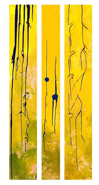Editor: This is Aki Kuroda's "Untitled #5," created in 1982 with acrylic paint. The strong contrast between the bold blue background and the vertical black shapes immediately caught my eye. What historical dialogues do you think this work engages in? Curator: I see it as part of the Neo-Expressionist movement, emerging as a powerful counter-reaction to the minimalist and conceptual art that dominated the 1970s. Consider the intense color palette and the apparent gestural spontaneity; Kuroda seems to challenge established norms. How does that impact our understanding, situating it politically and artistically? Editor: So, it’s a reaction. I’m curious, does that rebellion link to anything socially at the time? Curator: Absolutely. The 1980s were a time of significant social and political change, think of the rise of neoliberalism and increasing social inequalities. Artists like Kuroda were often implicitly, and sometimes explicitly, critiquing these shifts. How does the boldness of this abstract language possibly embody social tension and resistance? Editor: I can see it. The jagged, almost broken, vertical lines could be read as representing fractured social structures. What’s particularly striking is its resonance today, the inequalities feel more real now than ever. Curator: Precisely. What Kuroda unknowingly offered us, is an urgent premonition, as well as a vibrant, unique visual language to challenge power structures. Editor: I hadn’t considered that direct of a reading before, viewing it as a historical artifact only. I think this is a lot for me to consider. Curator: And that's the goal, isn't it? To keep challenging the way we see, the way we understand. Art becomes a powerful tool when seen through these lenses.