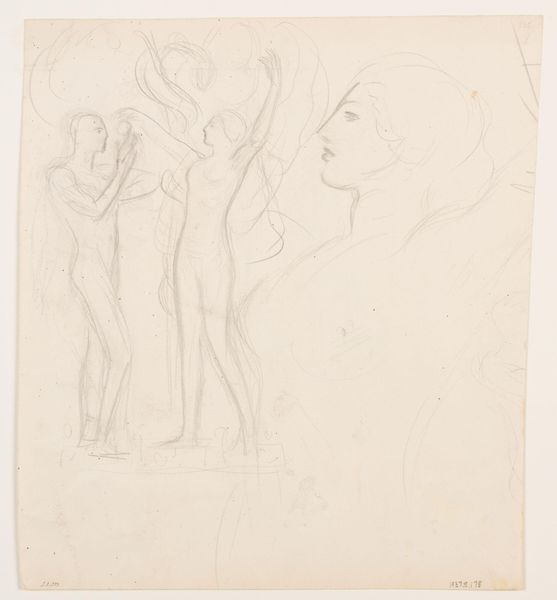 Svend Rathsack made this study on paper with pencil, and it's all about how a group of figures might relate to each other. You can see how the pencil almost dances across the page, each line searching for a form, a connection. The texture is in those varied pencil strokes – some soft and smudgy, others sharp and defined. See how the artist lets the lines build up, creating a sense of depth and shadow with a minimal approach. There is an intimate quality to the sketches, like a private conversation between the artist and the paper. Look closely at the figure standing in the center. The lines are tentative, unsure. It's like Rathsack is thinking through the pose, feeling his way through the form. It reminds me of some of Picasso's sketchbooks, where he was also working out ideas, letting the process itself be visible and lead the way. Ultimately, it’s about embracing the unknown, letting the drawing guide the artist, rather than the other way around.