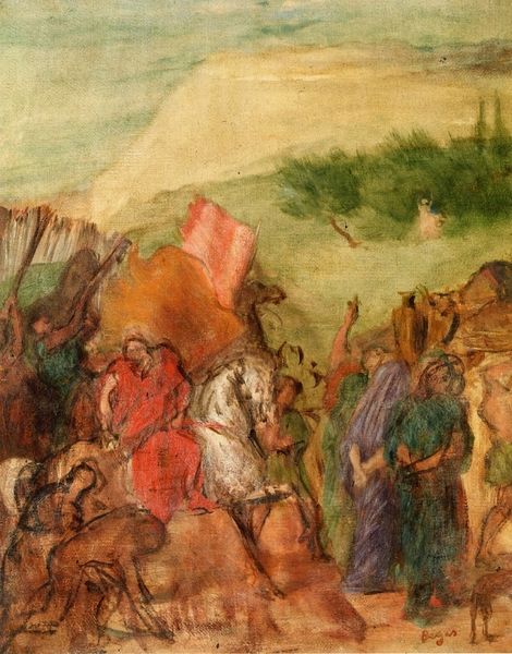 Noè Bordignon created this oil on cardboard painting, "Figures in glory". The composition is immediately striking, dominated by a spherical arrangement of figures bathed in a celestial light. Bordignon’s brushstrokes are loose and gestural, creating a sense of movement and ethereality. The colour palette is restrained, with blues and greens contrasting with the warm light emanating from the centre, evoking a sense of the divine. The figures themselves are arranged in a hierarchy, from the putto above to those seated below, suggesting a structured celestial order. This arrangement can be seen as a visual semiotic system, where the placement and light denote importance and proximity to the divine. The circle, a universal symbol of unity and perfection, frames the scene, reinforcing the idea of a self-contained, ideal world. Note how the edges of the sphere dissolve into the background, blurring the lines between the earthly and heavenly realms. This formal technique encourages us to reflect on the interplay between the finite and the infinite, challenging our perception of fixed boundaries.