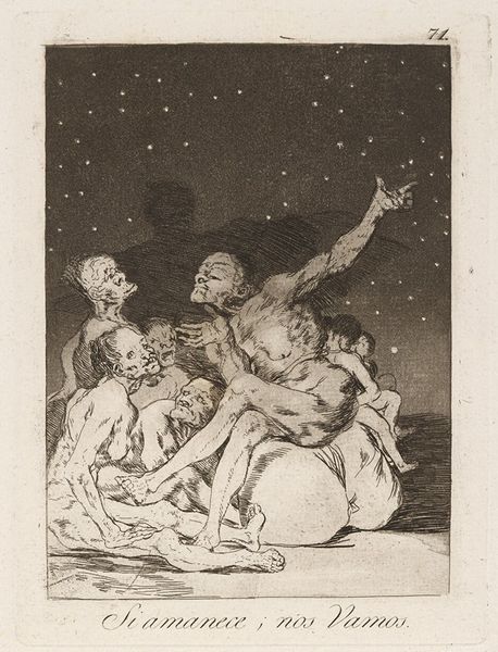 Francisco Goya made this etching, titled "Obsequio á el maestro," as part of his "Los Caprichos" series. The nightmarish scene reflects anxieties about social and religious institutions in late 18th-century Spain. Goya presents a grotesque parody of reverence, challenging the viewer to question established hierarchies. Figures with distorted features gather around what appears to be a newborn, offering it as a tribute to a shadowy "master." Is this a critique of the Church, the aristocracy, or perhaps even the institution of art itself? To fully understand Goya’s intent, we need to delve into the historical context: the Inquisition's lingering power, the rigid social classes, and the burgeoning Enlightenment ideals. Contemporary accounts, political cartoons, and even the artist’s own letters can offer invaluable insights. Ultimately, Goya's work reminds us that art is never created in a vacuum; it's a product of its time, reflecting and challenging the social norms and power structures of its era.