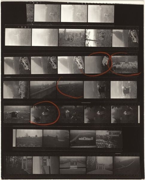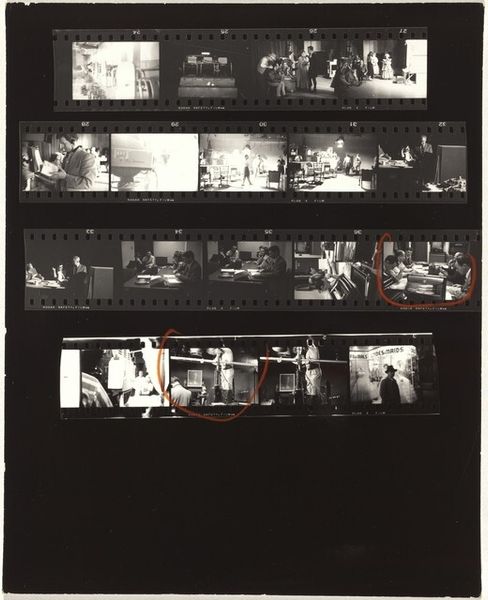 Robert Frank made this photographic contact sheet, ‘Guggenheim 616—San Francisco’, in the United States. It consists of various scenes: people around a table, a child on a sofa, and a street scene featuring a vending machine. Frank, who immigrated to the US from Switzerland, often trained his lens on overlooked corners of American society. In this work, the range of scenes and people hints at the diversity within San Francisco, whilst the contact sheet format itself—an indexical record of the photographer’s working process—suggests the role of the photographer as a kind of social surveyor or observer. As a photographer who was partly supported by a Guggenheim fellowship, we might ask: what role do institutions play in deciding which aspects of American life are worthy of artistic attention? To understand Frank’s vision, we might look to sources such as his application for the Guggenheim fellowship, as well as his published book, The Americans, which offers a powerful visual commentary on American life in the 1950s.
