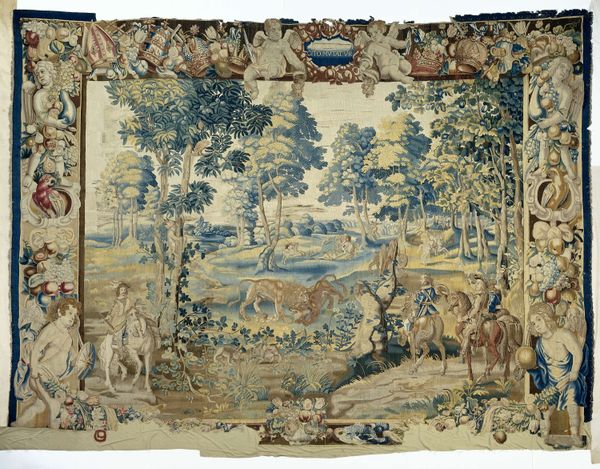This tapestry depicting the story of Niobe’s arrogance was created by François Spiering in the late 16th or early 17th century. It’s made from wool and silk, woven on a loom, a process demanding immense skill and patience. The tapestry's material influences its appearance, with the soft, tactile nature of wool lending depth to the scene. The silk adds subtle sheen, and the weight of the piece speaks to its value as both decoration and status symbol. The weaving process involved interlacing colored threads to create the intricate design, a process demanding collaborative labor. The skilled weavers would have transformed raw materials into a complex image, employing techniques passed down through generations. Tapestries like these were not just decorations; they represented wealth, power, and cultural refinement. They tell us about the social context of the time, reflecting the opulence of the elite and the skilled labor required to create such luxurious items. Remember, understanding the materials, making, and context is key to understanding the full meaning of this artwork.