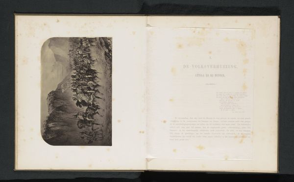 Curator: This photomechanical print, made before 1861, reproduces an image titled "Fotoreproductie van een prent van een leger Germanen," which translates to "Photoreproduction of a print of an army of Germans." What is your immediate impression? Editor: Visually, it feels chaotic, almost overwhelming. The composition is dense, figures piled upon figures, all rendered in very fine, almost scratchy lines. The light is uneven and creates a sense of drama and perhaps, unease. Curator: Indeed. It's worth considering the period during which this image was created. The mid-19th century saw a surge in nationalistic sentiment across Europe. This print likely fed into a romanticized, and probably biased, view of Germanic history. Note how the depiction of a supposed "German army" subtly legitimizes contemporary ideas about power and dominance. Editor: I notice the heavy use of chiaroscuro – that strong contrast between light and shadow – and how it influences our perception. It seems that this artistic choice creates movement that draws our eyes throughout the image. Can we say more about the narrative elements presented and the medium used here? Curator: Well, what we know for sure is that it served as source imagery likely intended to visually communicate some epic, national origin story for a largely white European audience. It’s impossible not to note the historical contexts when seeing artworks from the period that often reinforce dangerous nationalistic themes and racist stereotypes. Editor: Certainly. But speaking simply in visual terms, the formal repetition creates an effect – the eye struggles to discern individual forms, and rather blends into one another. Does that flattening create any sense of emotional disquiet you believe is at play, here? Curator: I think the visual turmoil reinforces this notion of a primal, unified national force—a single entity rather than individual agents, sadly representative of common ideas in its time about race and culture. This piece presents itself as “historical” but is undoubtedly shaped by, and promotes, the agendas of the 19th century. Editor: I agree entirely. Seeing these complex layers informs and alters the whole composition for the viewer, and ultimately helps explain the artistic trends throughout this moment. Curator: Indeed, these historical pieces act as documents of past cultural thought. Examining their impact allows for critical reflection.